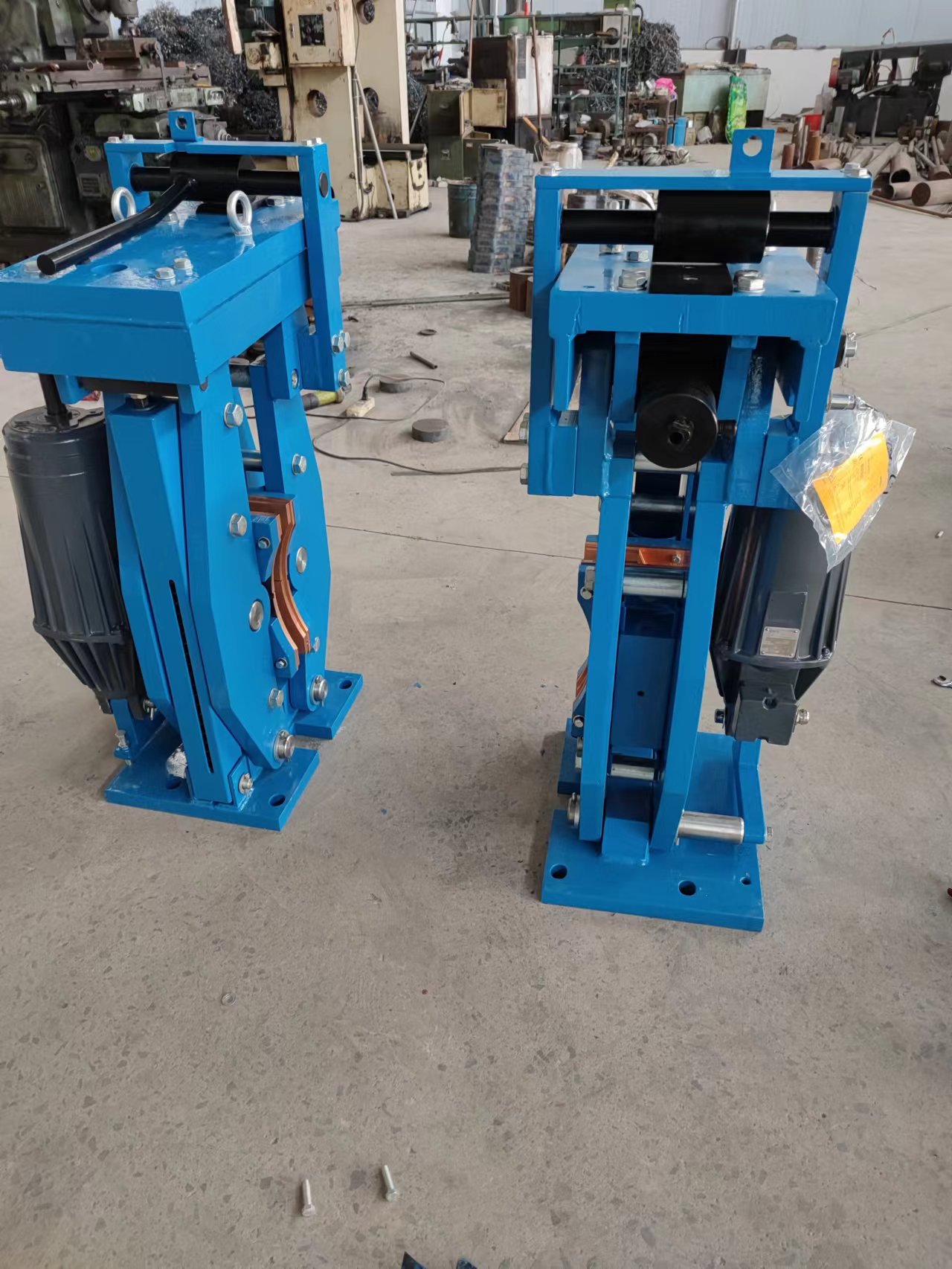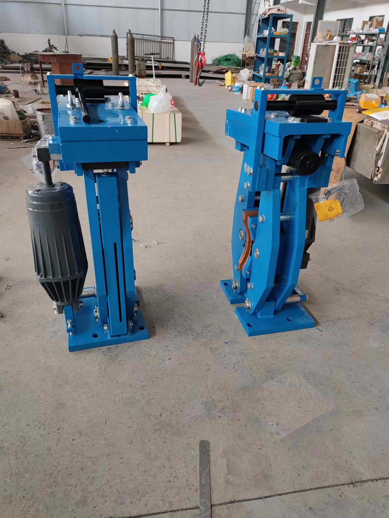 制動(dòng)臂:  與制動(dòng)瓦連接,制動(dòng)盤(pán)位于制動(dòng)瓦之間。制動(dòng)臂與拉桿和杠桿板連接,通過(guò)彈簧產(chǎn)生制動(dòng)力。